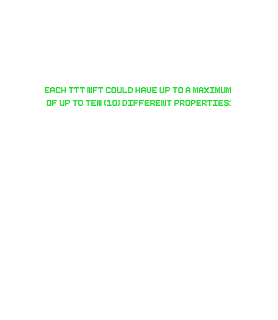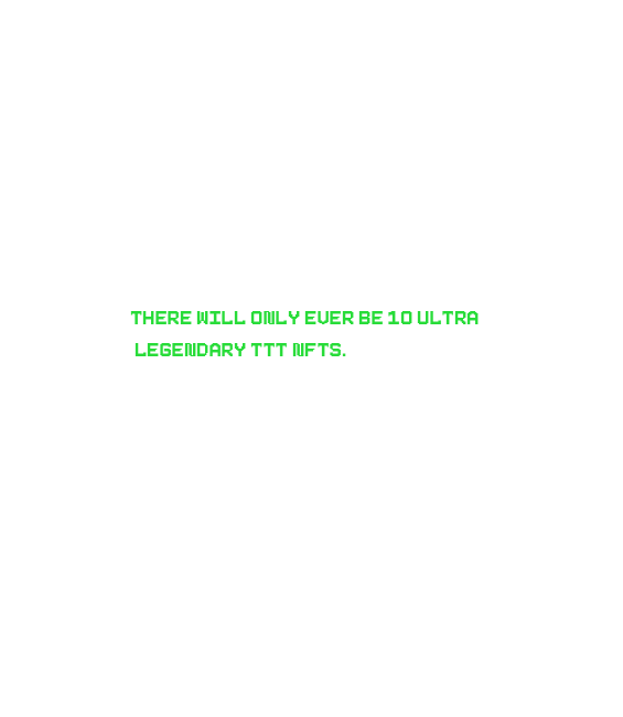 Everyone will have an equal chance at minting an Ultra Legendary TTT NFT. There will be six (6) of the ten (10) Ultra Legendary TTT NFTs included in the Mint Factory to be minted at random! Each part of the collection will have Three (3) Ultra Legendary TTT NFTs of there own made available for random minting. This strategy gives our community a fair and equal chance at obtaining an Ultra Legendary TTT NFT for themselves at Mint Factory price. |